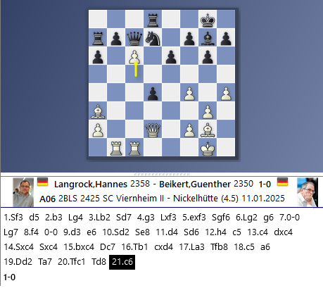 An den Brettern 5 und 6 war Aue im Besitz eines doch deutlicheren Ratingvorteils hier könnte es also statistische Chancen auf einen vollen Punkt geben. Leider reichte es an diesen Brettern letztlich zu 2 Remisen und auch das Gesamtergebnis endete insgesamt friedlich.